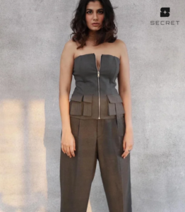 Zipper Fly Closure: Features a front zipper for an edgy and modern touch.